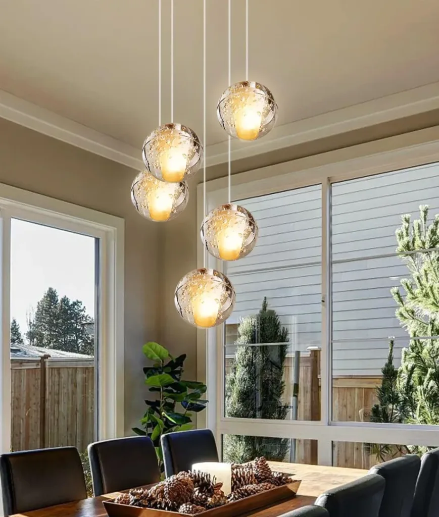 Un luminaire trop petit au-dessus d’un meuble important ou dans un espace largement meublé aura tendance à disparaître et à perdre de son efficacité. Inversement, un luminaire disproportionné par rapport aux meubles environnants peut sembler écraser l’espace.