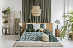 Une plante pothos (Truffaut, 8 €) sur une table de chevet en bois (Leboncoin, 10 €) ajoute une note verte. Associez à une housse de couette en coton biologique (Ikea, 20 €) pour une chambre cohérente.